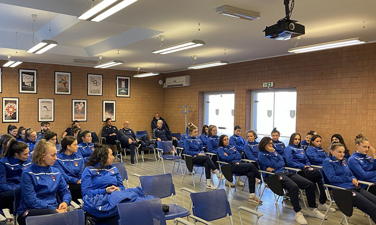 Nell’occasione, il Capodelegazione Santino Lo Presti, ha portato il suo “in bocca al lupo” alle giocatrici, insieme al Coordinatore Tecnico Massimo Piscedda e al Segretario del Dipartimento Calcio femminile Patrizia Cottini.